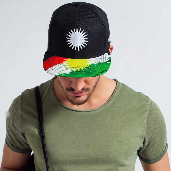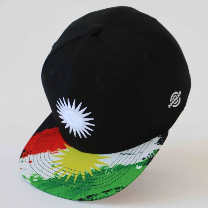 Kurdistan Cap Classic 6 Luftlöcher gerader Schirm mit Print schweißabsorbierendes Innenband größenverstellbar per Snapback-Verschluss gesticktes Wappen auf der Front gestickte Logodetails Material: 100% Polyester